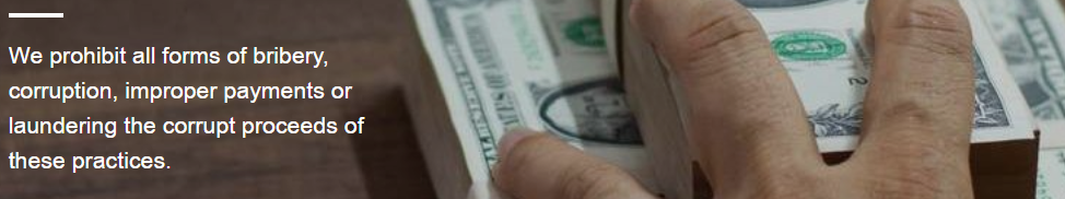 We prohibit all forms of bribery, corruption, improper payments or laundering the corrupt proceeds of these practices.